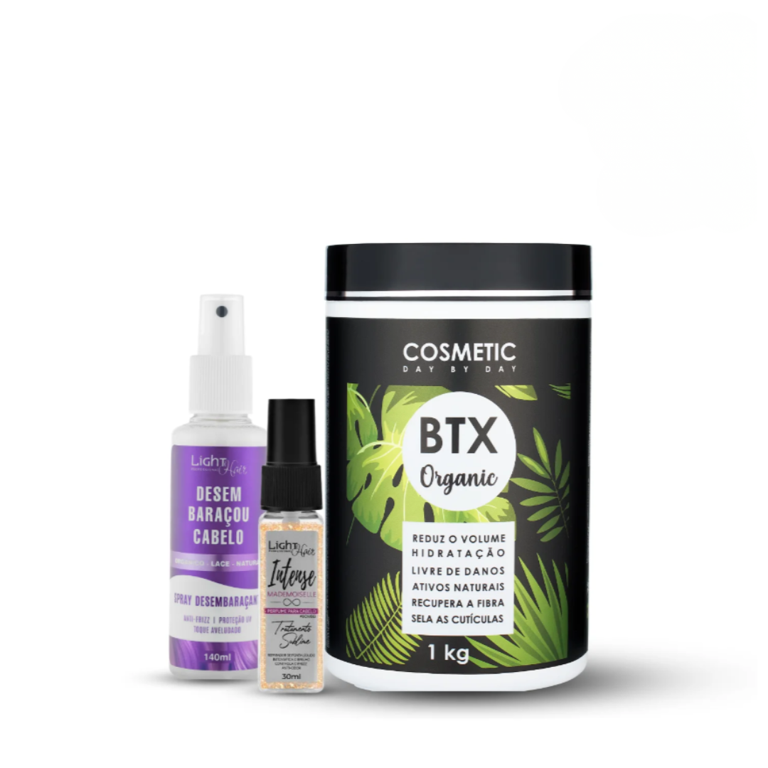 O Kit Botox Capilar Profissional da Light Hair Professional oferece uma solução completa para cabelos saudáveis e vibrantes. Com o Perfume para Cabelo Mademoiselle (30ml), que proporciona uma fragrância sofisticada e proteção leve, o BTX Termo Redutor Selagem Organic (300g), que reduz volume e frizz, promovendo cabelos lisos e alinhados, e o Spray Desembaraçante Light Hair (140ml), que facilita o penteado e evita a quebra, este kit garante fios macios, hidratados e com um aroma irresistível. Experimente e sinta a transformação!