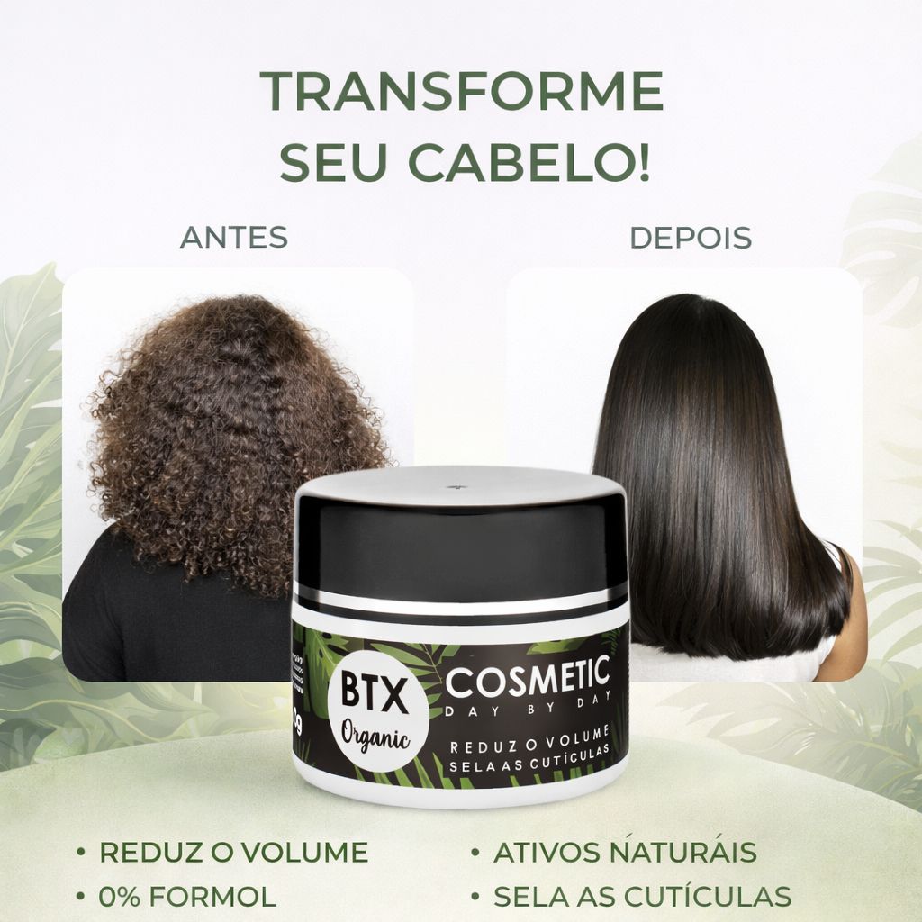 O Btx Organic age no rejuvenescimento dos cabelos, sua fórmula atua de dentro para fora nos fios, repondo a massa capilar. O efeito nos cabelos é imediato, elimina o volume, acaba com o ressecamento, restaura as pontas ásperas. Tornando os fios recuperados, visivelmente saudáveis com incrível emoliência e brilho.